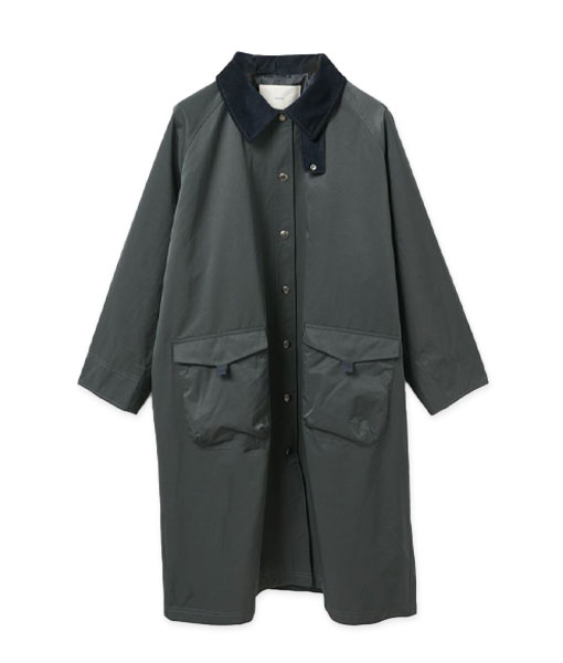 グレーをベースにしたグラデーションでトーンをそろえたシックなコーディネートです。コートの襟や袖口にあしらったコーデュロイ素材がアクセントとなって、ベーシックな着こなしにテンションを加えてくれます。トーンを抑えた色同士の組み合わせが、洗練されてオシャレな印象に。