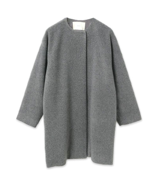 フロントの装飾を省いたノーカラーコートは、シンプルで着こなしやすくスタイルが品よく仕上がる一着です。アウターがシンプルな分、インのニットやボトムスに少し遊び心を効かせるのがおすすめ。シューズや小物選びで印象が変えられるアレンジのしやすさもポイントです。寒い日には、首元のストールやマフラーでオシャレ度をアップさせて。