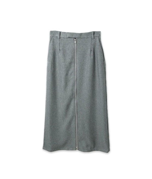 Wジップを施したモードな印象のスカートをベースに、シャープなイメージを活かして、モノトーンの着回し術をご紹介します。組み合わせ方やレイヤードのアイデア次第でいろんなアレンジを効かせられる、使い勝手の良いデザインのスカートです。