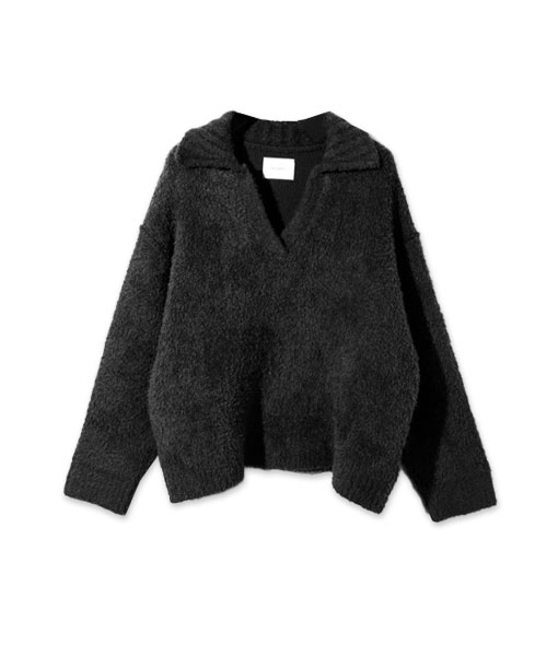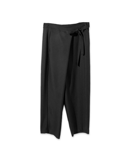 共布のベルトでウエストを自在に調整できるラップパンツにスカートをオンの組み合わせ。デザインされたパンツのシルエットを活かすよう、ジップは大きめに開くとバランス良好です。モードなボトムスにプラスするのは、やわらかな糸で織られたフェザーヤーンのニットのトップスを。優しい風合いがゆるっとラフを空気感を演出してくれます。
