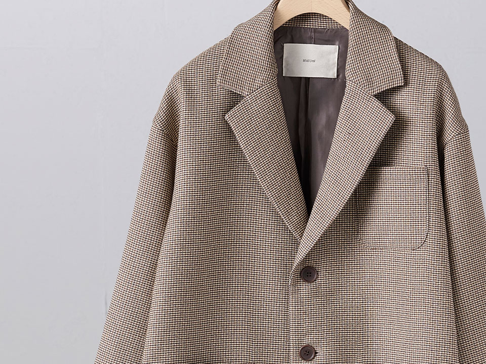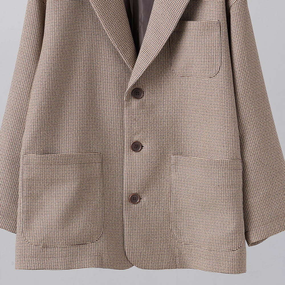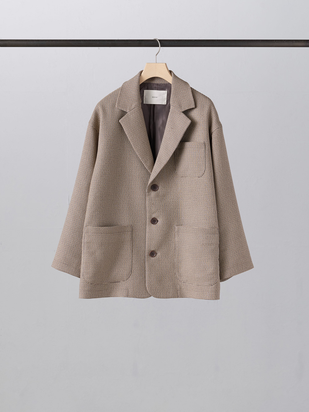 定番であり、今シーズンのトレンドとしても注目されているチェック柄。ブラウンベースの温かみのある色使いに、シングルの3つボタンというスタンダードで着こなしに取り入れやすい形です。身頃の幅は広すぎずタイトすぎず。ラペルの形もレトロでクラシカルな雰囲気のある、かわいらしさが魅力です。