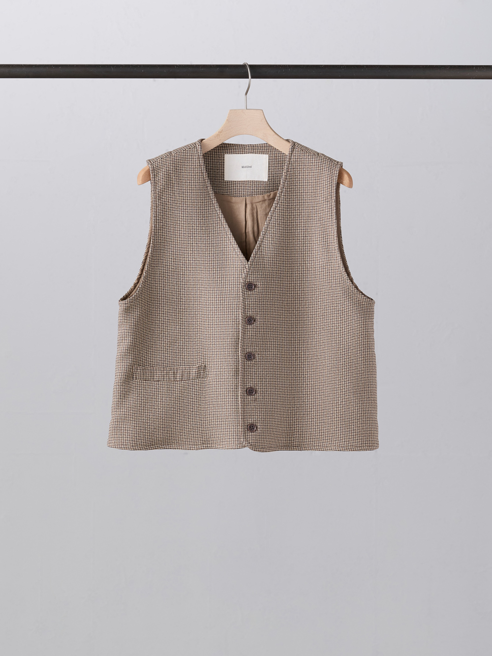 上品さとカジュアルさのほどよいさじ加減を楽しめる今季のトレンドキーワードのチェック柄。インナーに忍ばせることで最旬のテイストを演出できるベストは、おすすめアイテムのひとつです。ジャケット&パンツとのスリーピースでの着用も、是非トライしていただきたい着こなしです。