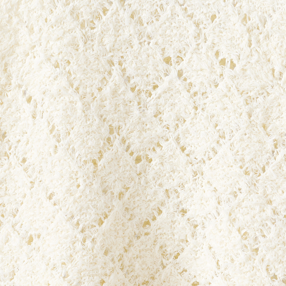 ダイヤの編み地の立体感と透け感がほどよく調和した表情のある素材感。やわらかい肌あたりが心地良い生地です。