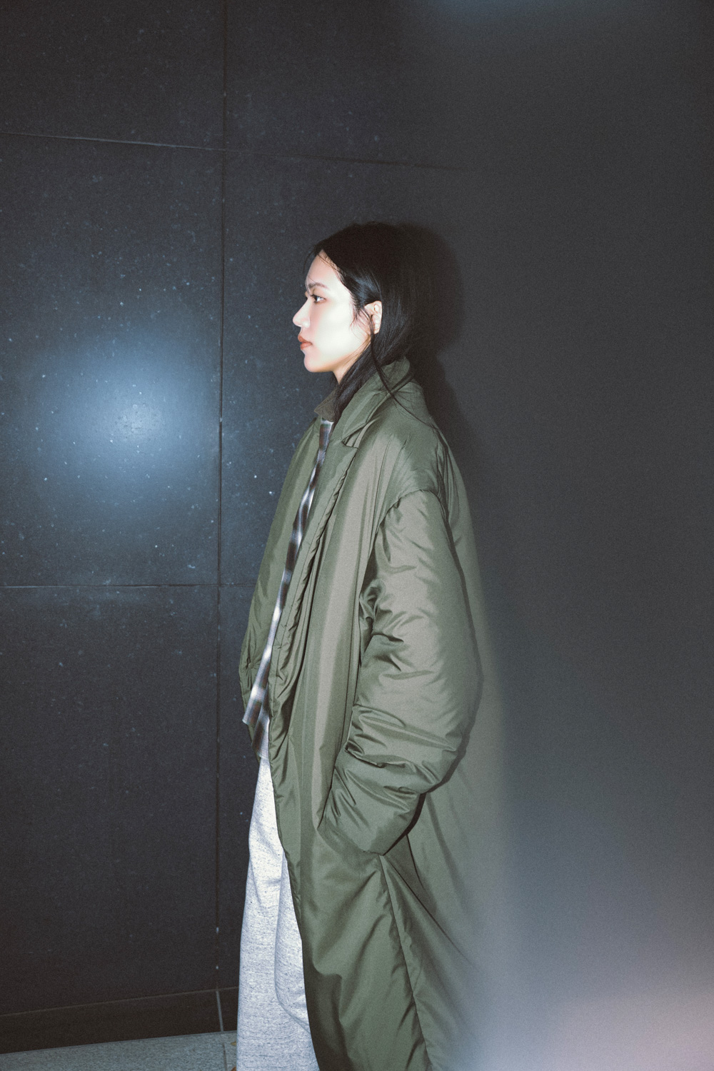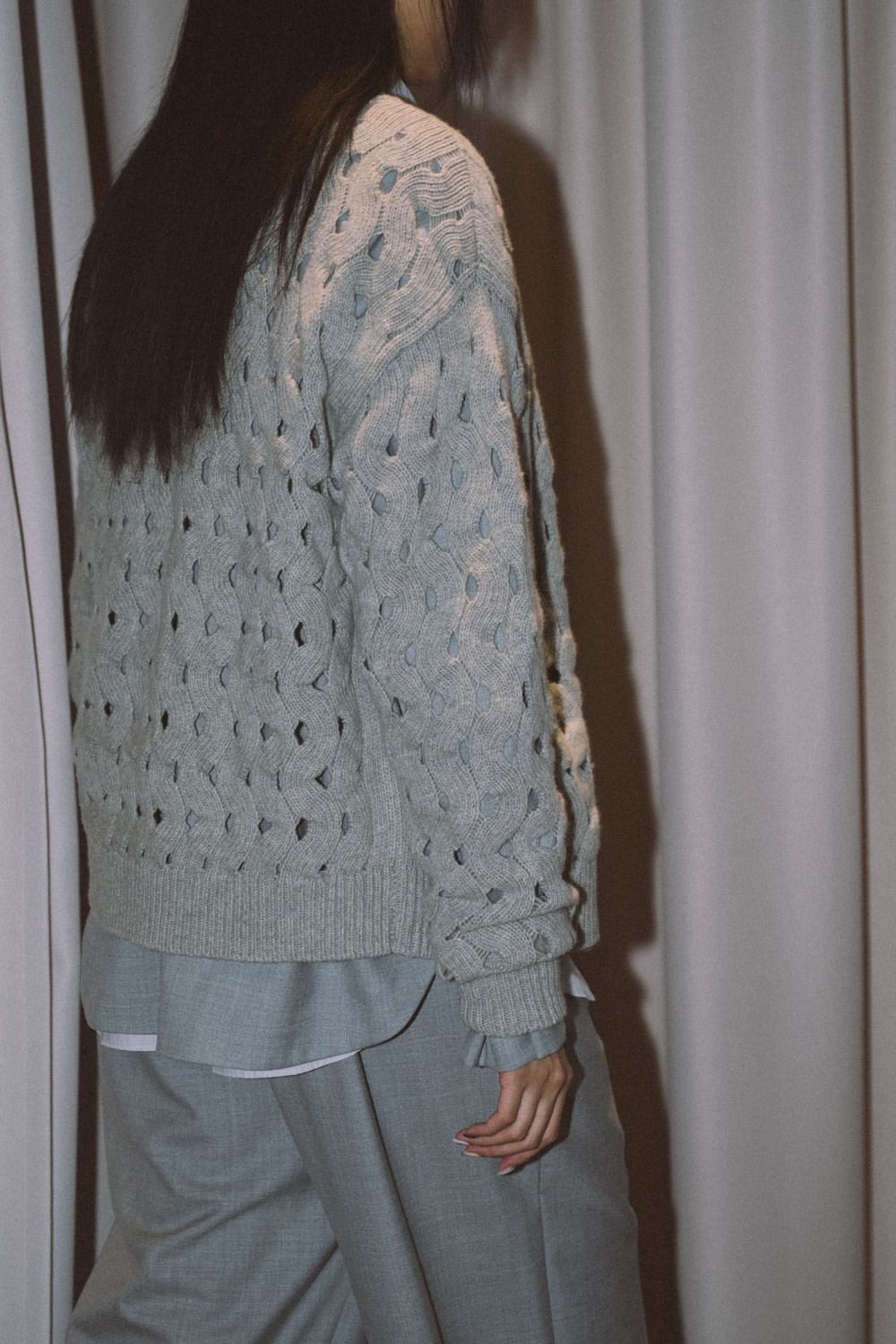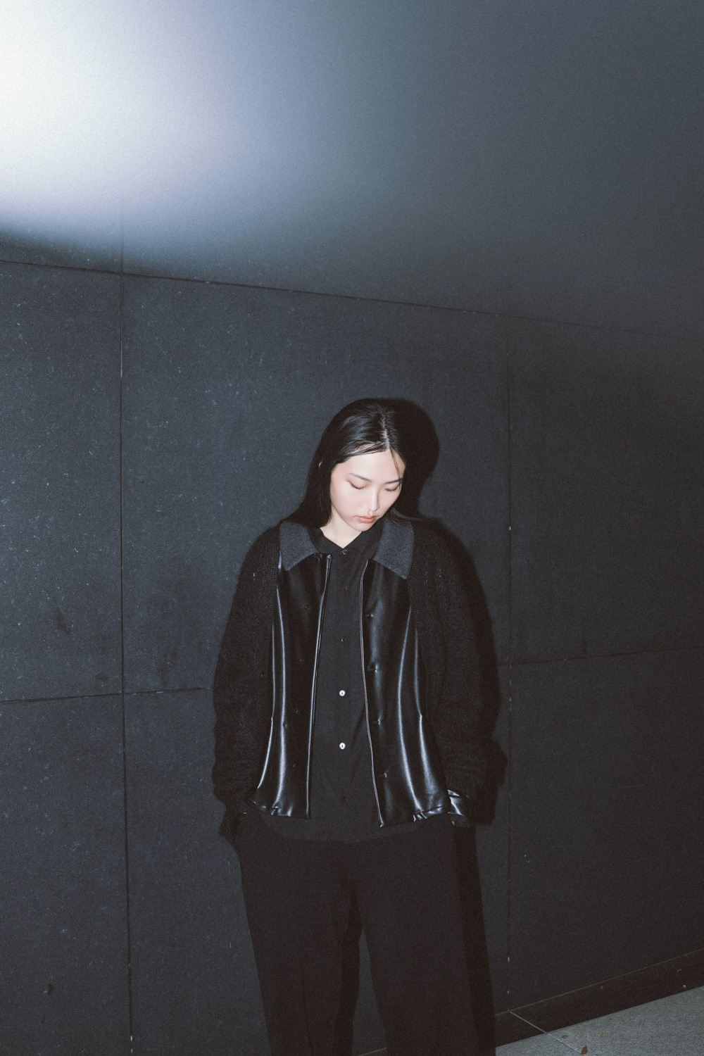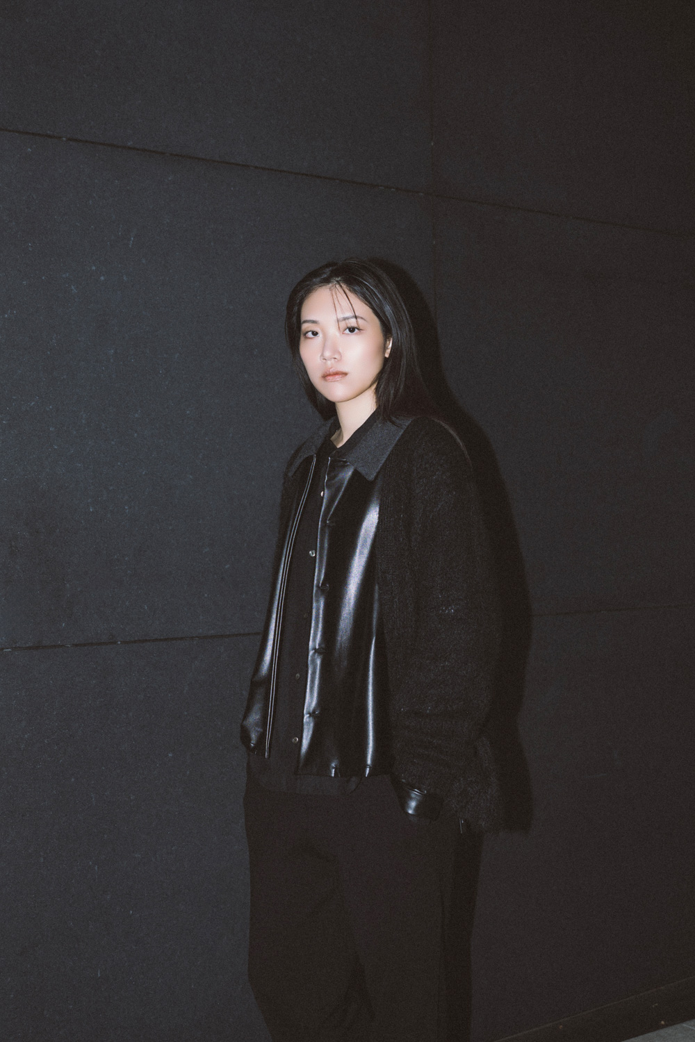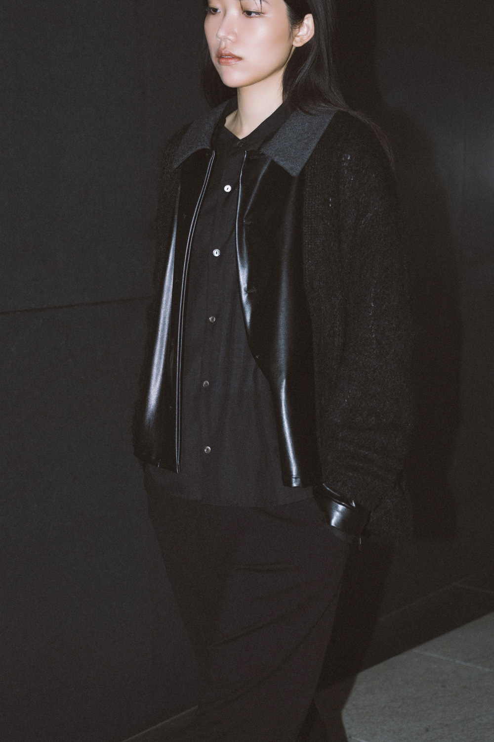 重なり合う表情が、モードな空気を添えます。